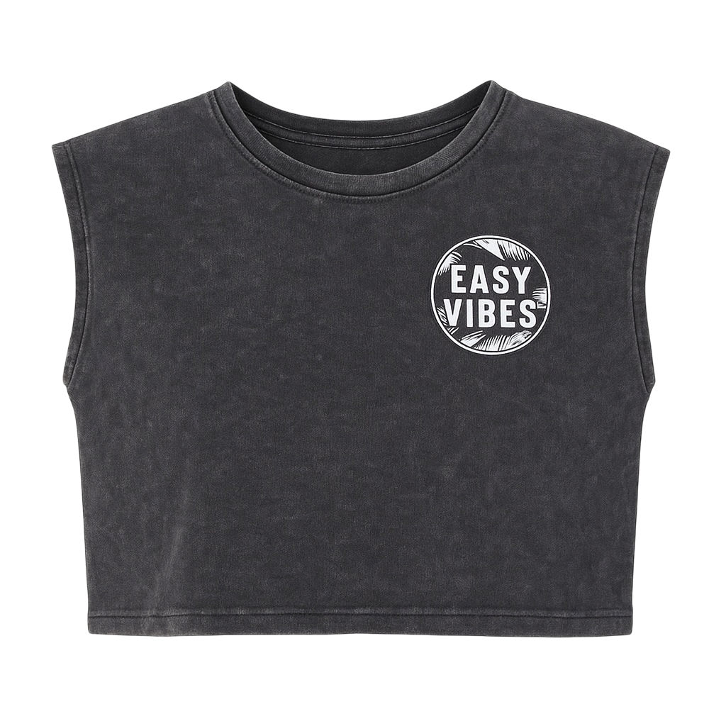 Soft, worn-in comfort with effortless edge. Crafted from a breathable cotton blend and designed with a relaxed cropped fit, this top is made to move with you. Each acid wash finish is uniquely treated for that lived-in look — perfect for sunshine, movement, and living in the moment.