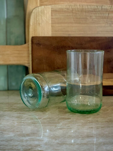 Handmade drinking glass, from Acqua Panna San Pellegrino bottles.