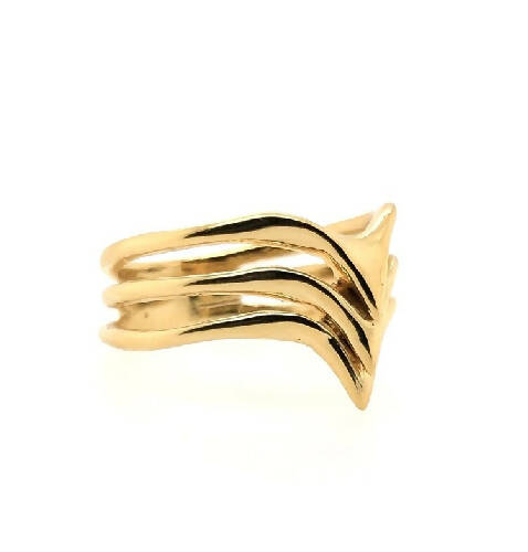 Three bands contour down the finger to a point creating a sleek silhouette.