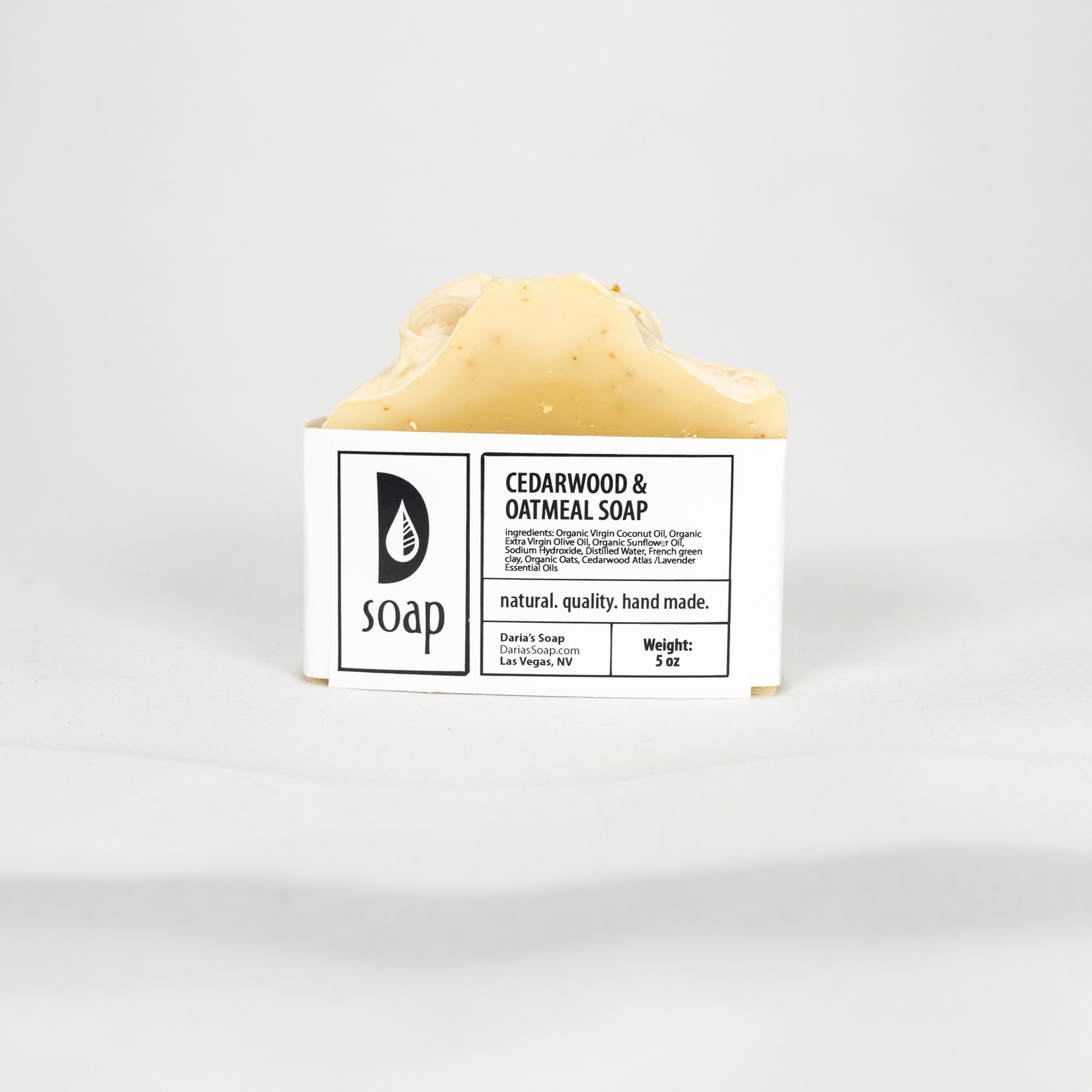 Ingredients: Organic Virgin Coconut Oil, Organic Extra Virgin Olive Oil, Organic Sunflower Oil, Sodium Hydroxide, Distilled Water, French green clay, Organic Oats, Cedarwood Atlas /Lavender essential oils