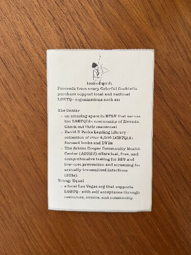 Proceeds from every Colorful Cocktails purchase support local and national LGBTQ+ organizations such as: