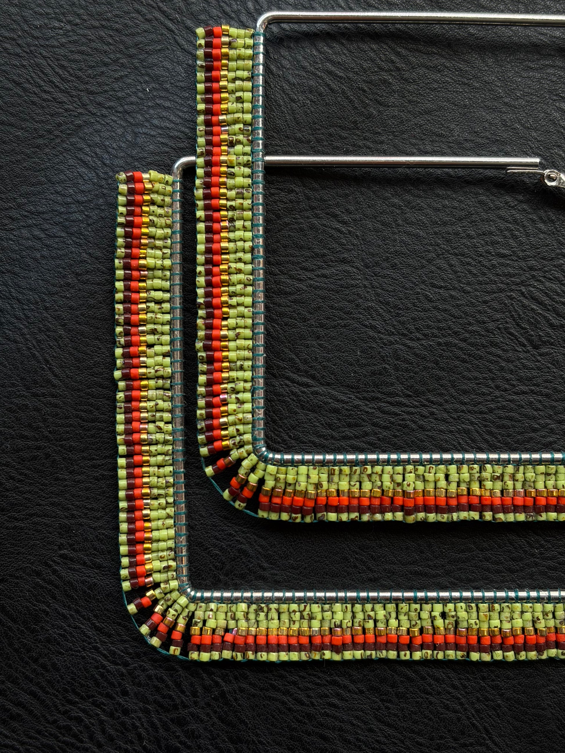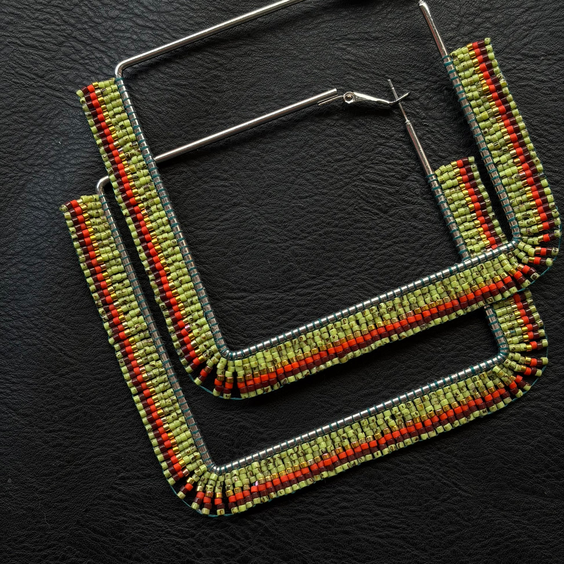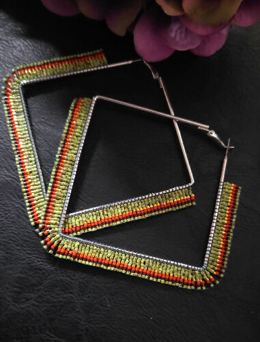 A modern twist on a classic silhouette — these square hoop earrings are silver-plated and hand-beaded on three sides, because we believe beauty should never leave you entangled.