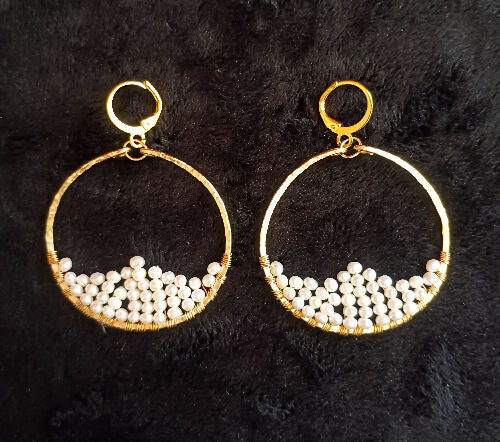 Handmade wire-wrapped earrings. White fresh-water pearl.