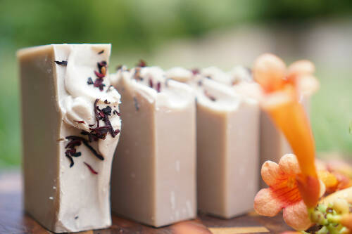 I use Hibiscus flowers infusion for this soap recipe. Hibiscus has a magical reputation for increasing skin elasticity to give a stunning natural youth-boost. Due to the slightly exfoliating effect of the organic acids found in the plant, including citric acid and malic acid, Hibiscus helps to speed up cell turnover, resulting in a more even looking skin tone. Hibiscus is also very rich in antioxidants, called anthocyanocides they also have an anti-inflammatory effect and can help to soothe inflamed skin, making Hibiscus suitable for those prone to very sensitive skin. The organic acids from Hibiscus bring your skin back in balance for a naturally gorgeous, glowing complexion. The naturally moisture rich qualities of Hibiscus helps skin stay hydrated, soft and supple for longer, keeping dry, dull skin at bay. I also added to this soap a Brazilian PURPLE CLAY, this clay is rich in trace elements such as magnesium which contributes to the formation of collagen, essential to keep skin looking younger. The skin becomes firmer and smoother.