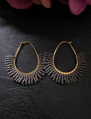Hand-stitched onto our signature raw brass base, these pear-shaped fringe earrings embody effortless style with a touch of artistry. Designed to be quick, easy, and undeniably chic, they offer movement, texture, and just the right amount of shine.
