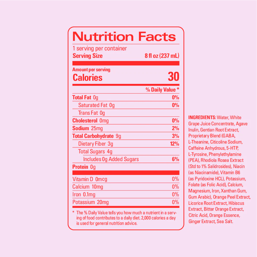 Untap good clean energy. Non-alcoholic and gently caffeinated Kin Spritz is infused with adaptogens, nootropics, and botanics like Rhodiola Rosea, 5-HTP, and Gaba to elevate your mood, smooth out stress, and offer a boost of energy.
