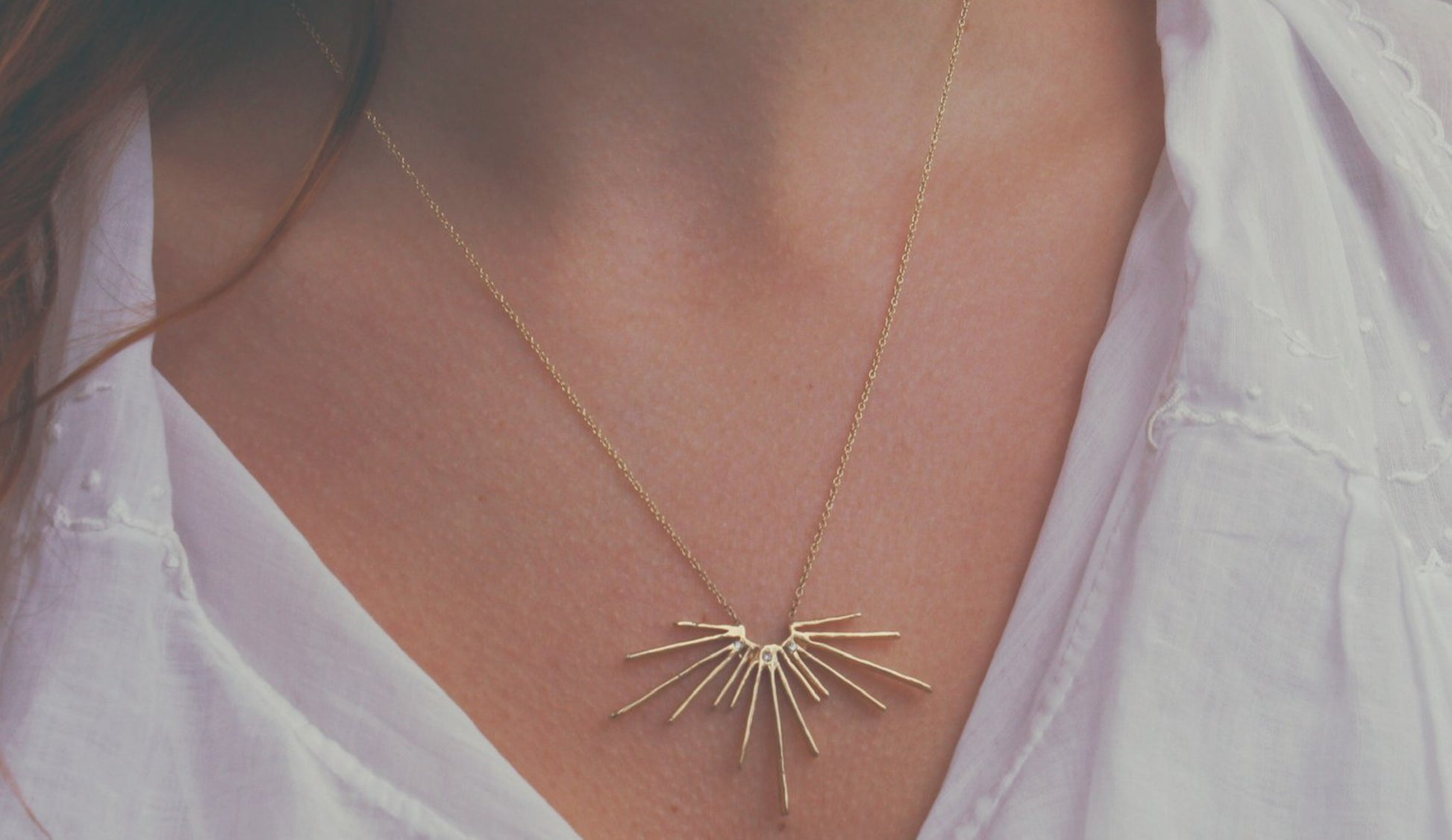 Hand carved light ray details form a sleek and sculptural feel to this pendant. Inspired by the healing warmth of the sun - soak it up and feel renewed.