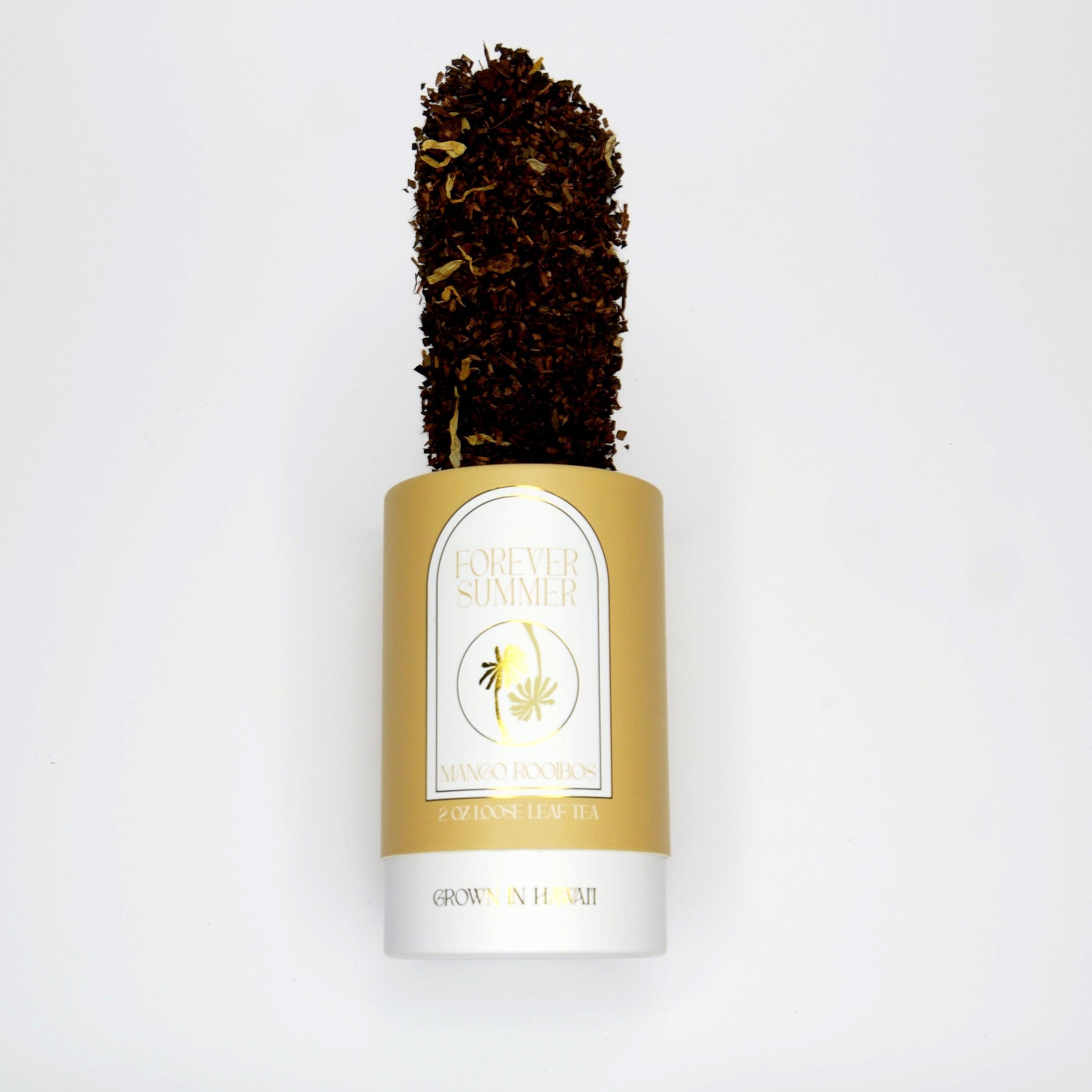 “A Rare herbal blend of African bush with a twist of Hawaiian Tradewinds, volcanic soil and freshly picked mango. “