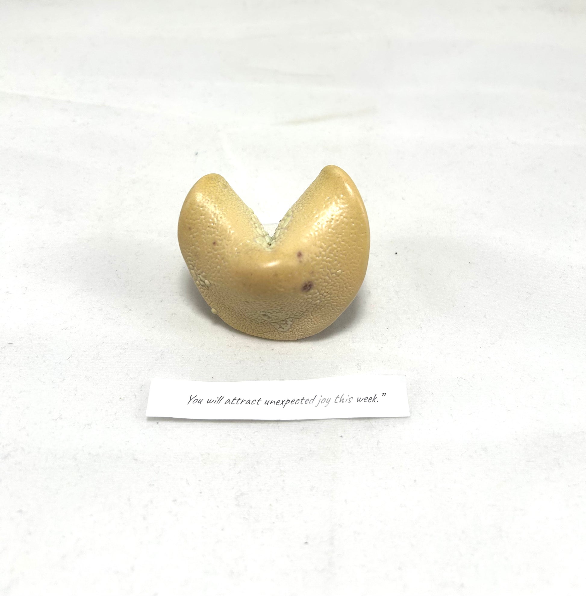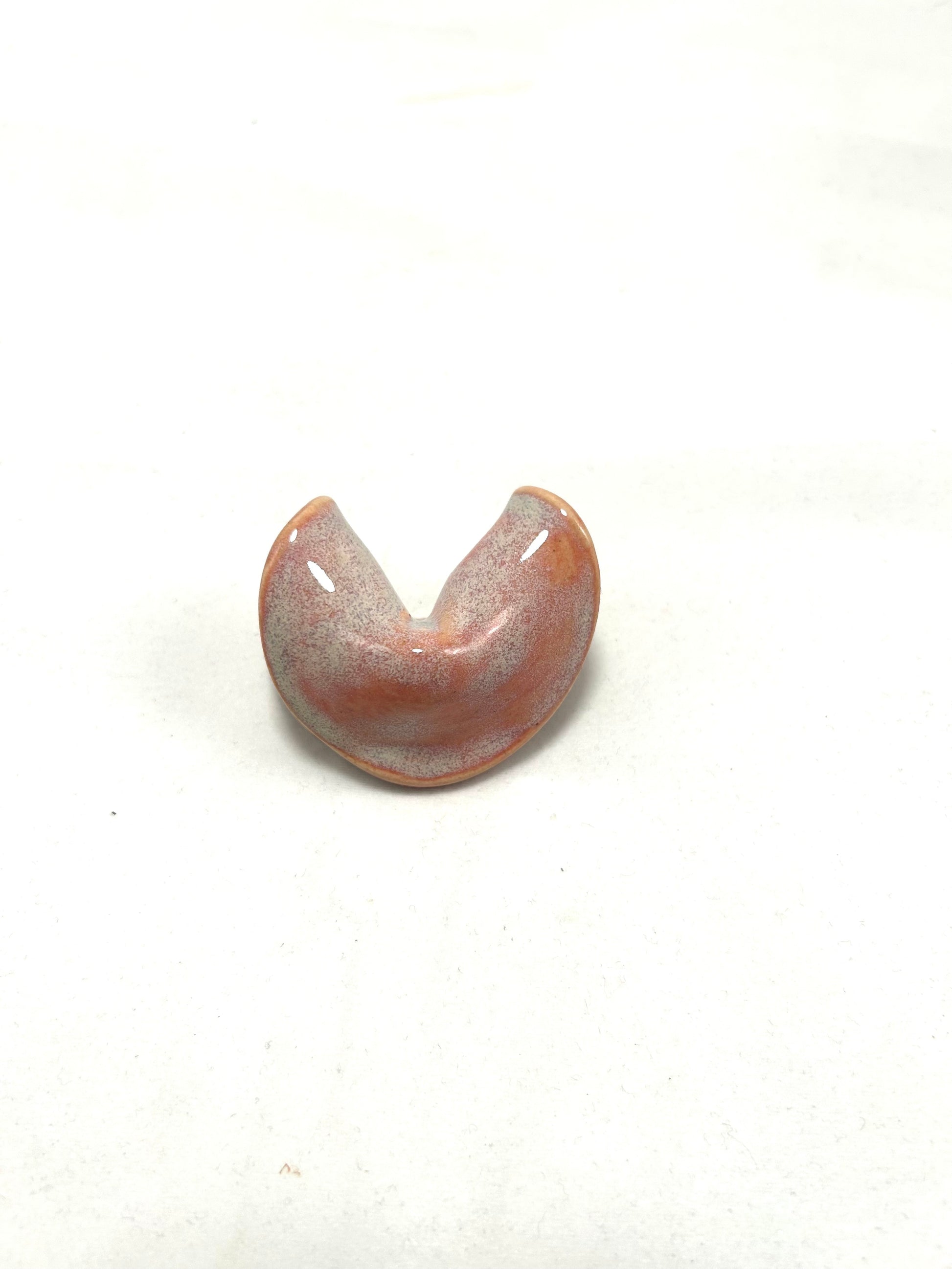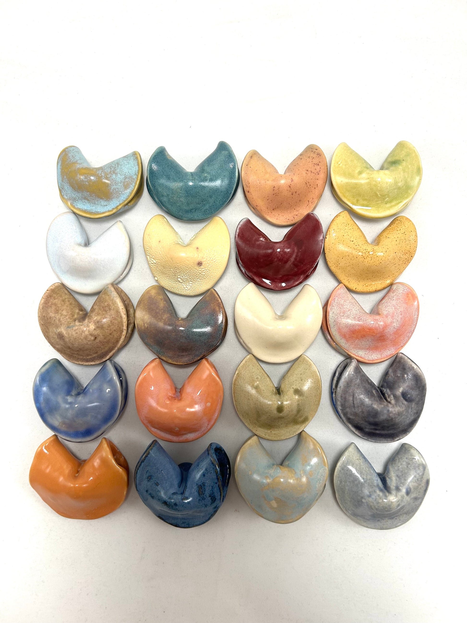 The MIST Fortune Cookie is a handcrafted ceramic item designed to mimic the traditional fortune cookie. Each piece contains a fortune inside, providing an engaging experience. The ceramic material ensures durability, making it a lasting keepsake that can enhance décor while delivering personalized messages.