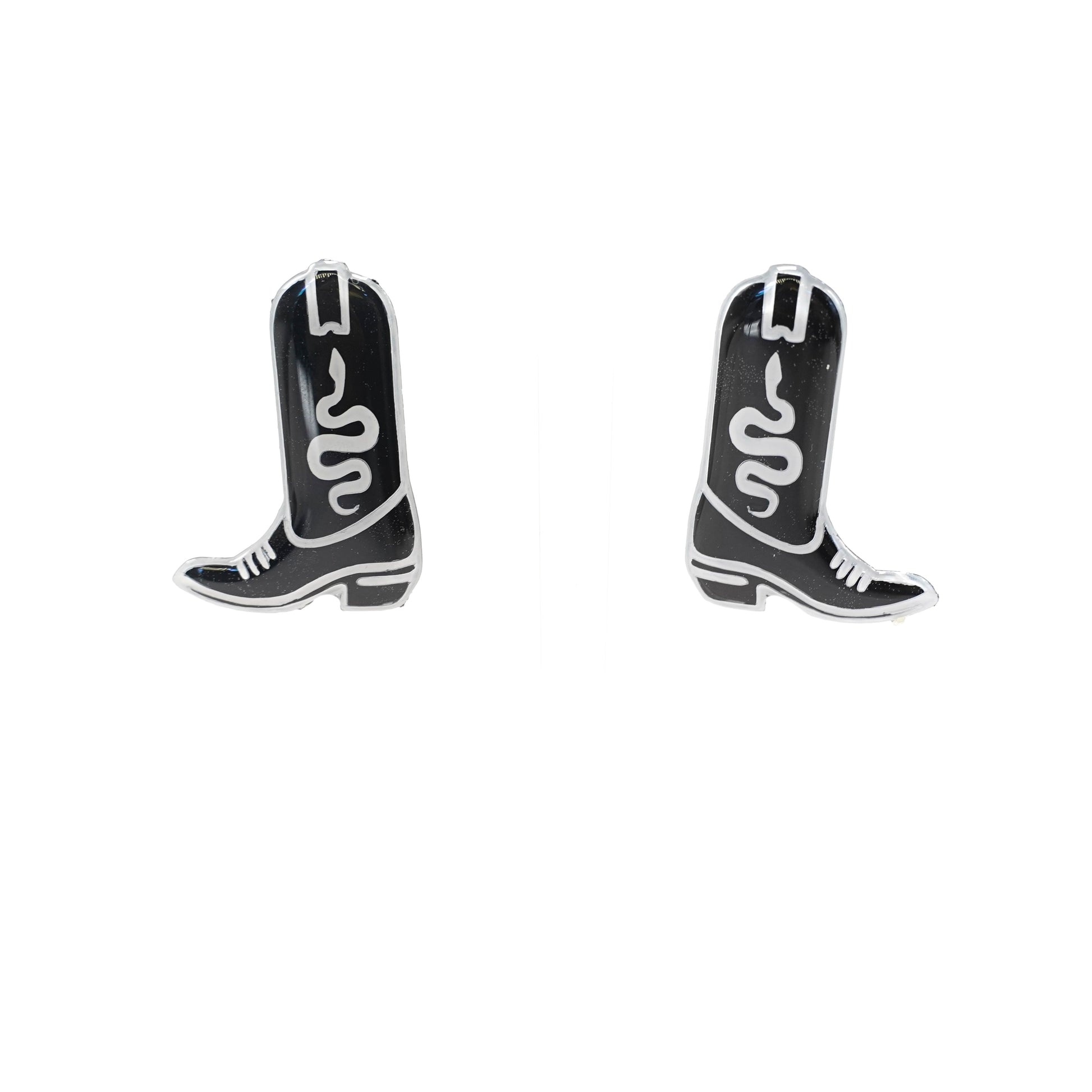 Crafted with a lightweight resin material, these cowboy boot earrings feature a bold design of snakes and flames, making them a unique addition to your jewelry collection.