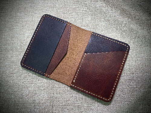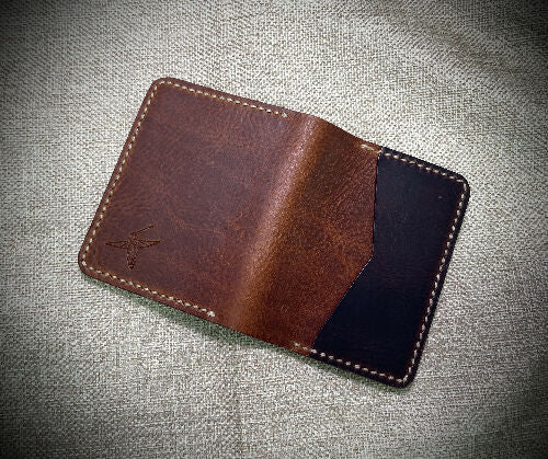 Waxy pull up leathers in Cognac and walnut w/natural stitch