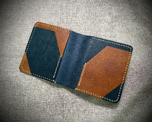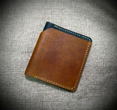 Waxy pull up leathers in natural tan and aqua w/ natural stitch.